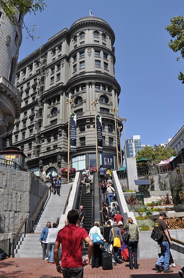 John King, the former urban design critic for the San Francisco Chronicle, often bemoaned the lack of a real solution for Hallidie Plaza. The City’s Department of Public Works held a workshop a few years back that tried to come up with answers. But, as workshops go, this was another light touch that was a “design by committee” exercise.