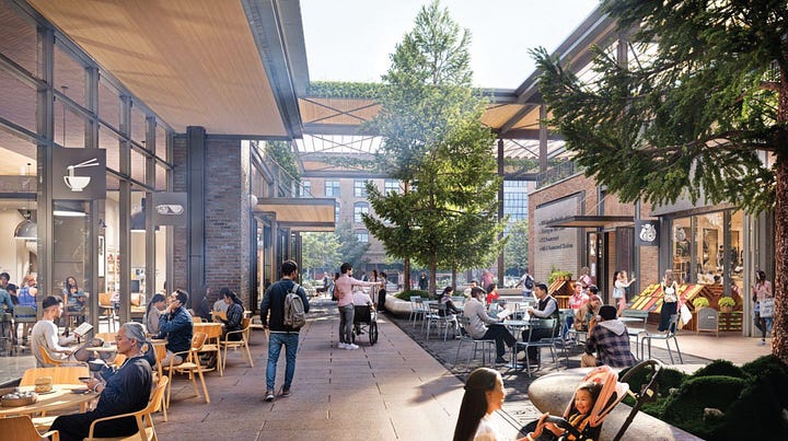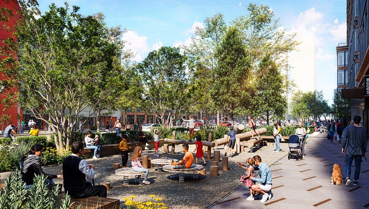 The preliminary renderings are well done, but for my money, they give the feeling of one more office park. The children’s playground is an afterthought. The new train station is buried in one of the towers when it should be celebrated and made one of the more prominent elements. I’m all for density, but sometimes it comes at the expense of including some of the features that Bryant Park has included, like fountains, a dining pavilion, a place to play chess or ping pong, or even a branch library with seating for reading. So maybe one has to downsize the expectations of those investors in the Prologis REIT.